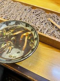 お昼は、定番の”温かも汁そば2尺”