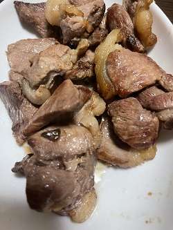 以前にもいただいたことはあるのですが、その時よりも獣臭はないし、甘みがあるし、柔らかいし言う事なしのお肉でした。